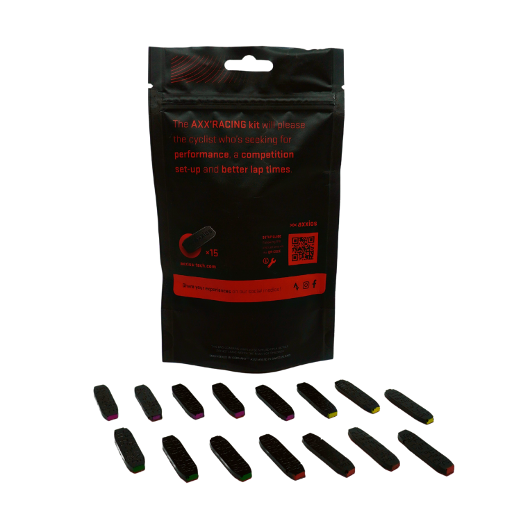 Kit de 15 pièces. Quinze modules standards à appliquer sur le guidon, la potence, le cadre, la suspension, les jantes et les moyeux de ton vélo pour un gain en confort, rendement, roulabilité et performance. Ce kit est destiné aux cyclistes de haut niveau.